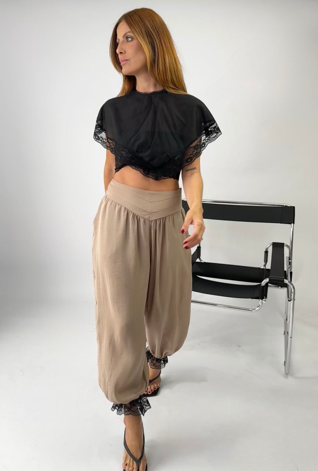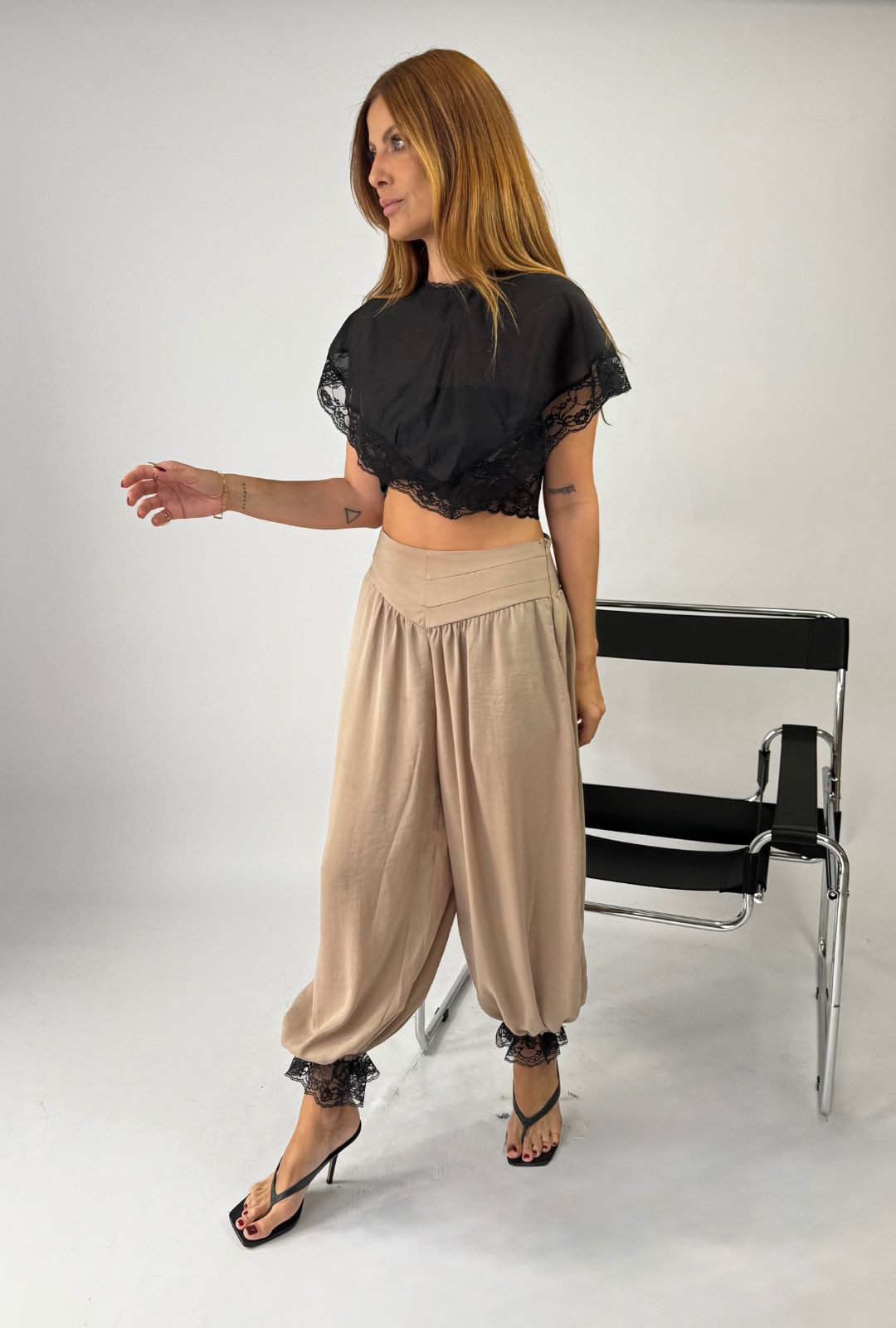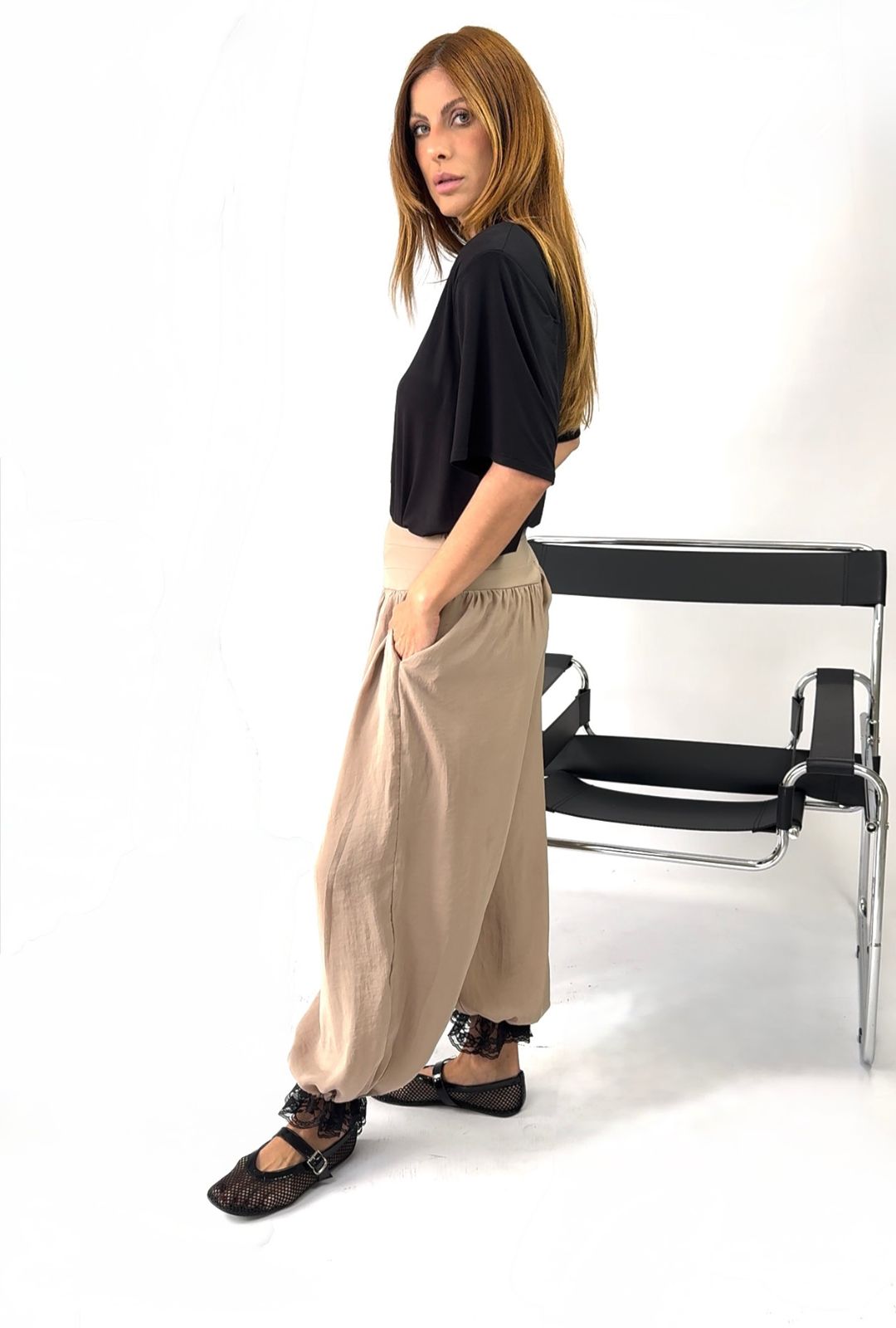 Feita em tecido leve, ela traz o charme descontraído de uma calça Aladim em versão mais curtinha, perfeita para o verão.